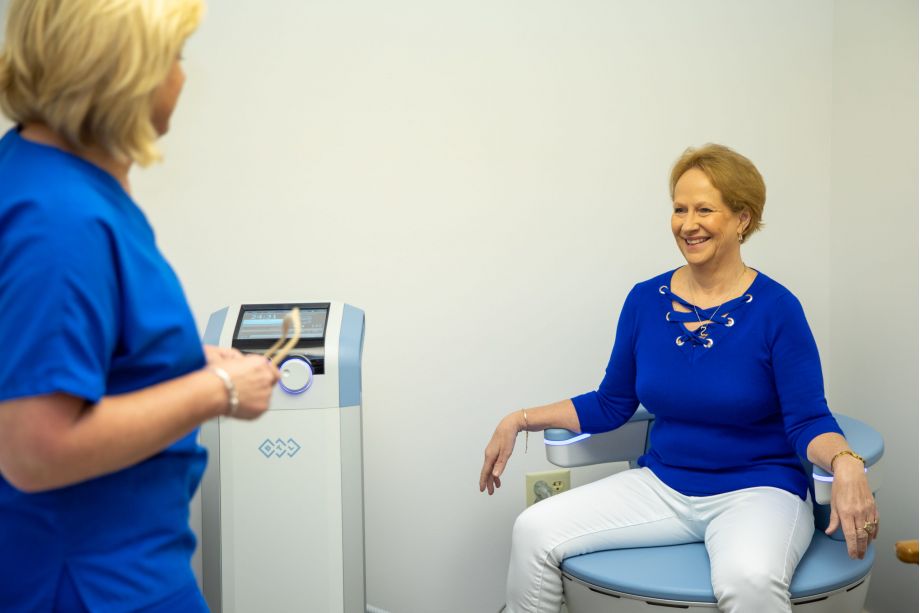 BTL EMSella is a non-surgical, non-invasive treatment for stress urinary incontinence and urge incontinence. The treatment is delivered by comfortably sitting in an ergonomic chair fully clothed, where electromagnetic technology penetrates the targeted tissues of the pelvic floor and stimulates the muscles, building up muscle strength and restoring the support for the pelvic organs. In doing so, the pelvic floor muscles are strengthened and improved dramatically, the vaginal walls are tightened, urinary and urge incontinence is decreased and sexual satisfaction is increased. BTL EMSella is so powerful, during one short 28-minute treatment, BTL EMSella will provoke 11,700 contractions, which is equivalent to performing 11,700 Kegel exercises that contracts the pelvic floor muscles more powerfully than you can!